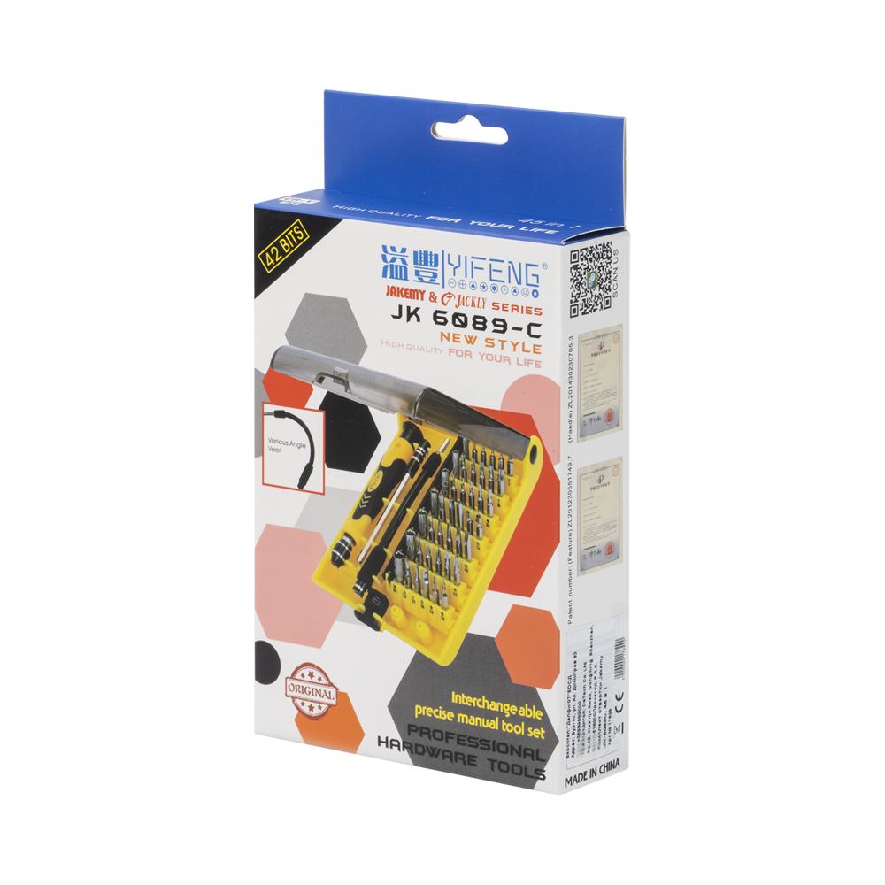 Sada přesných šroubováků Jakemy – žlutá budete moci provádět profesionální opravy drobné elektroniky, mobilních telefonů, tabletu. Šroubovák se drží jako stejně jako např. propiska, tudíž se sním skvěle pracuje. Spodní část šroubováku se protáčí, díky čemuž se s ním lépe pracuje a zvyšuje se tak komfort při práci. Do hůře přístupných míst se dostanete snadněji pomocí flexibilního nástavce.