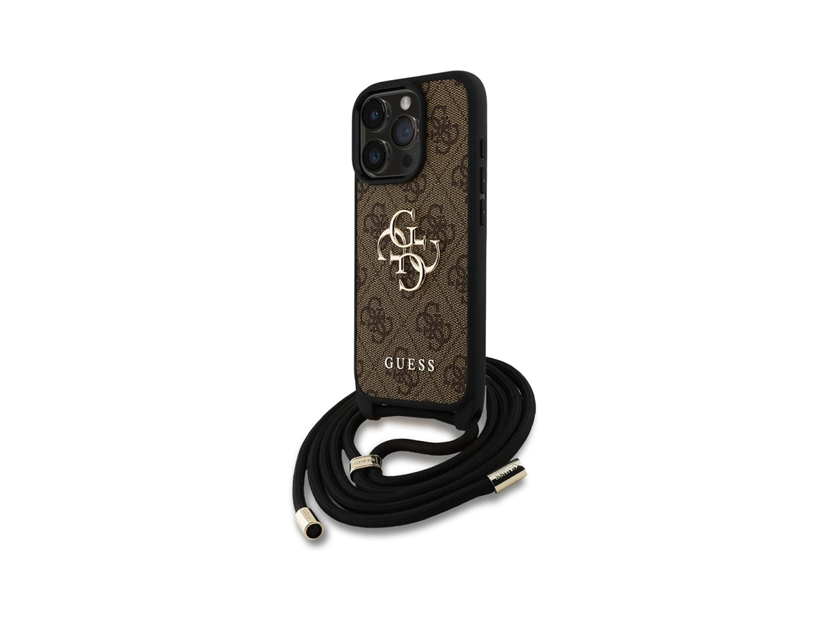 Guess PU 4G Metal Logo Zadní Kryt pro iPhone 15 Pro Hnědá + Crossbody Popruh