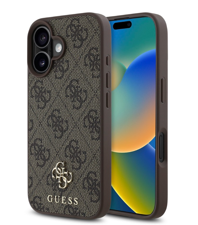 Guess PU 4G Small Metal Logo MagSafe Zadní Kryt pro iPhone 16 Brown