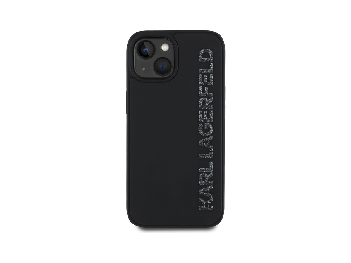 Karl Lagerfeld 3D Rubber Glitter Logo Zadní Kryt pro iPhone 15 Černá