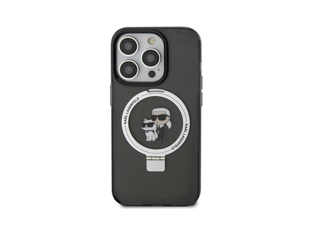 Karl Lagerfeld Ringstand Karl and Choupette MagSafe Zadní Kryt pro iPhone 15 Pro Černá
